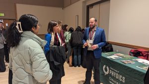 Josh Berger and Yulia Maximenko (both assistant professors) hosted a CSU Physics booth at that Conference for Undergraduate Women and Gender Minorities in Physics which happened at CU Boulder for our local area. APS supports these conferences with multiple locations all over the country.
