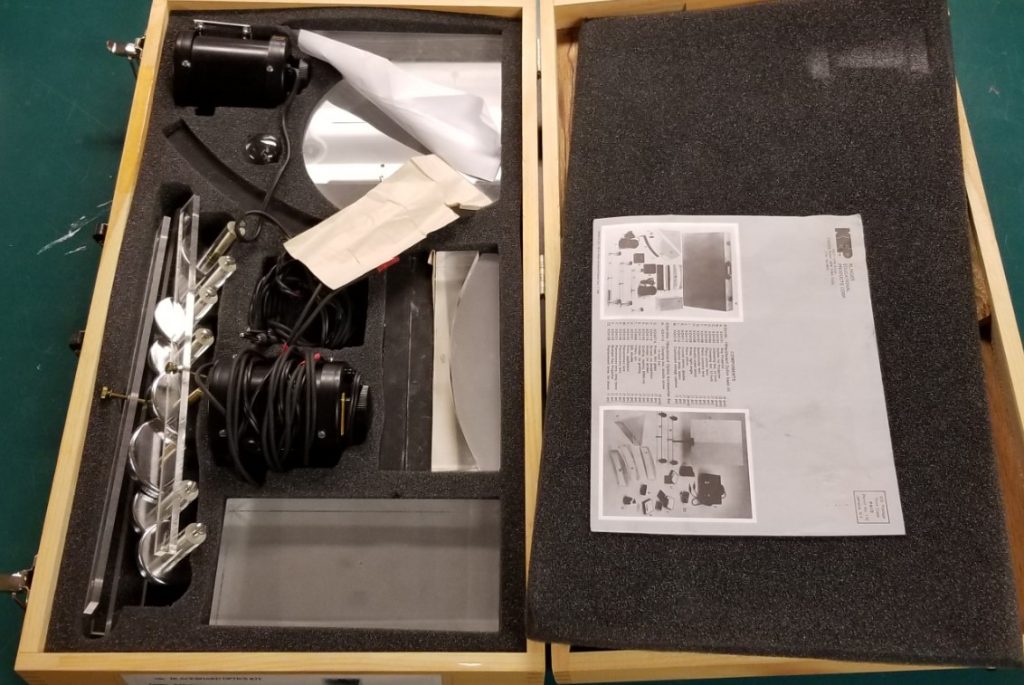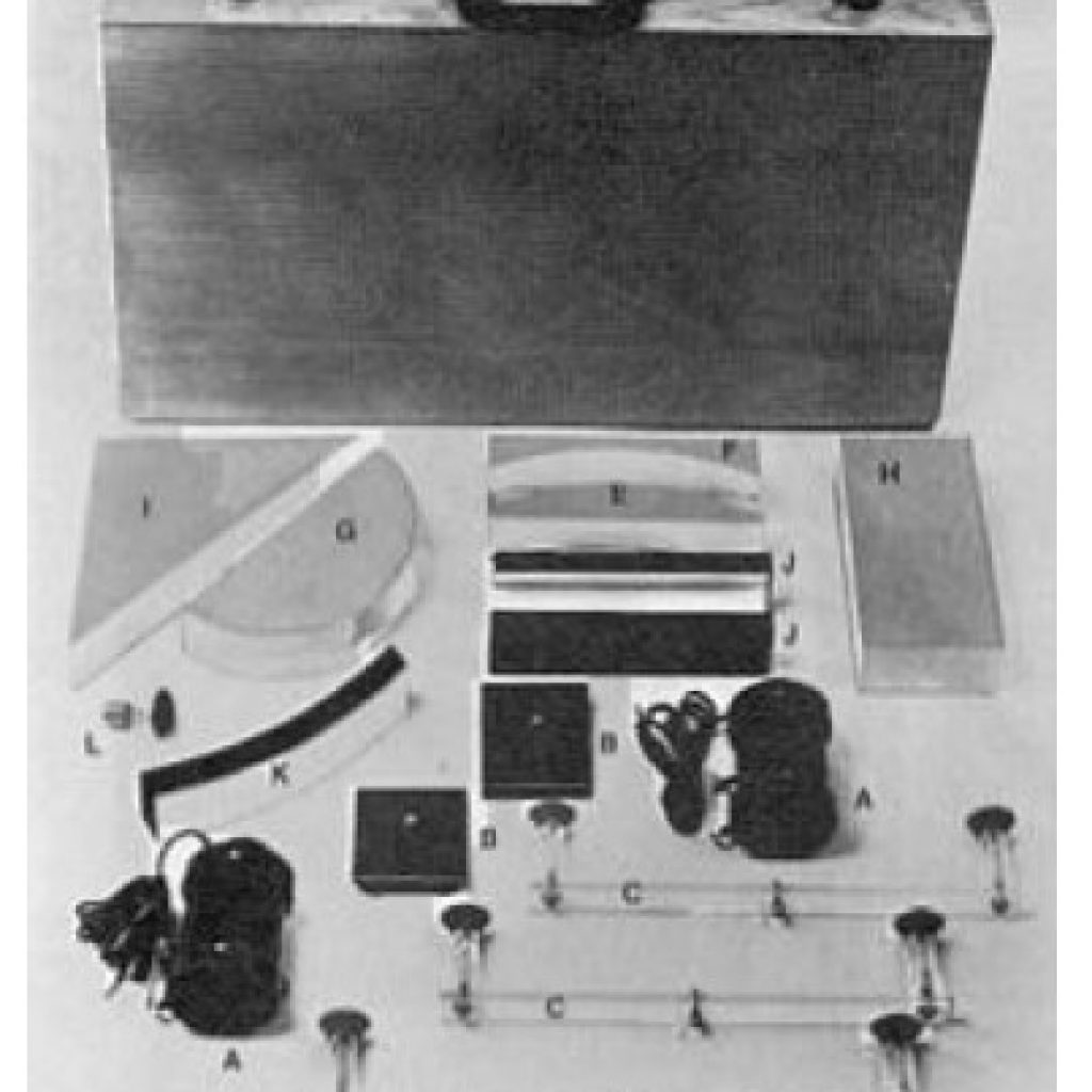 | Description | This is a demo kit showcasing a variety of different optical phenomena. It is basically a big version of a ray box (with lenses, mirrors, etc.) that will mount with magnets to an old-style blackboard. |